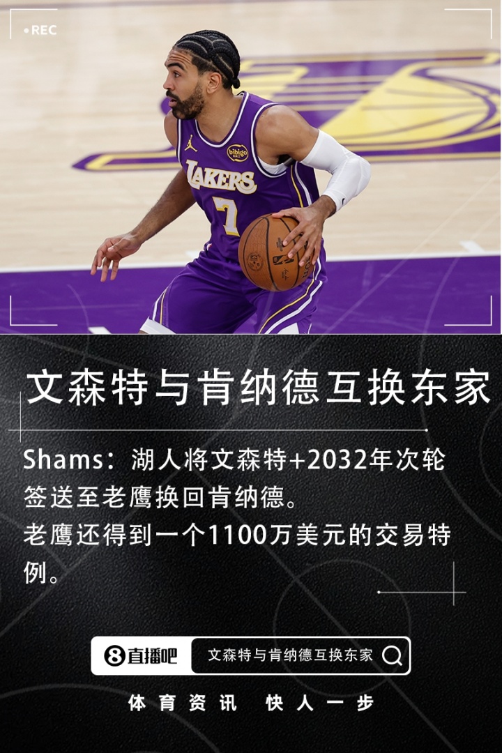 💥Shams:湖人将文森特+2032年次轮送至老鹰换回肯纳德