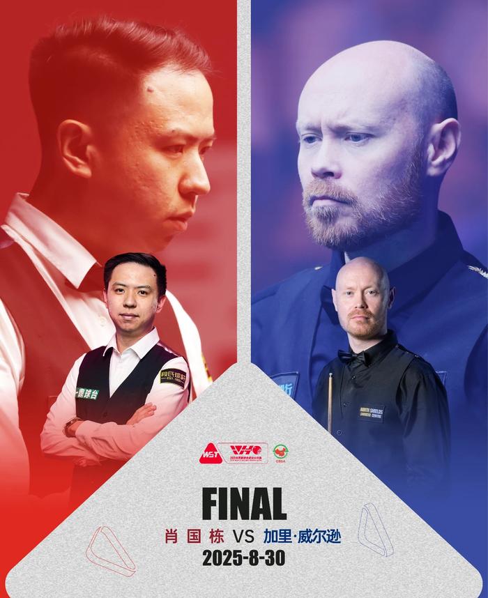 今天(30日)的2025世界斯诺克武汉公开赛决赛,中国选手肖国栋对战英国选手加里·威尔逊。赛制为19局10胜,第一阶段在14:00展开,第二阶段在19:30进行。